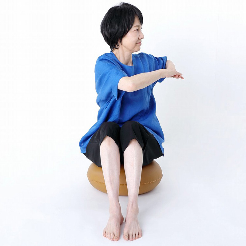 勝手に転がらず、安定感があるイス型のバランスボールは、座って揺らすだけで腹筋や背筋を刺激するエクササイズやストレッチなどができます。