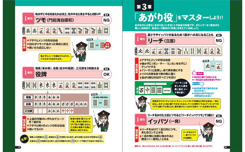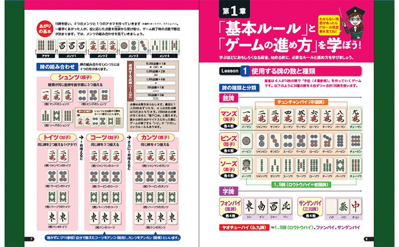 さらに特別付録としてカード麻雀が付くので、カード牌を並べながらより実践的に麻雀のルールを覚えることができます。