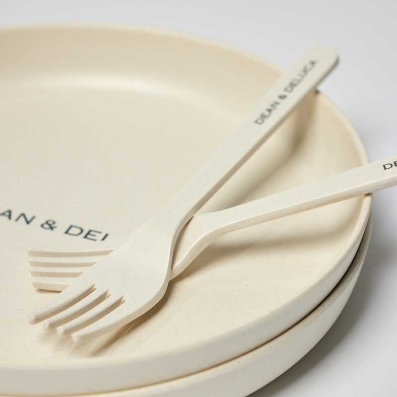 環境に配慮したバンブーファイバー入りの食器&カトラリー。軽くて手に負担がかからないので、食べる練習中のお子さんから年輩の方まで気軽に使えます。
