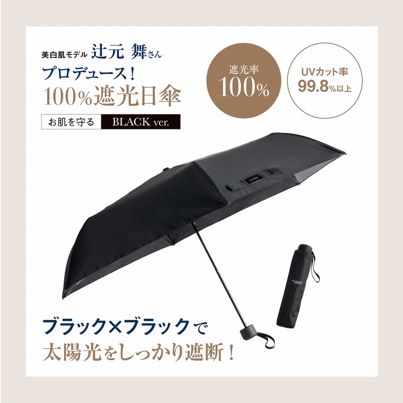 美しく白い陶器のような肌で人気のモデル辻本舞さんとのコラボにより、日差しの強い夏でもまぶしくなく、しつかり日焼け対策もできる日傘が誕生!