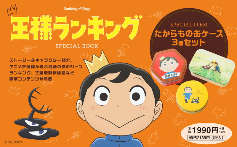 耳が聞こえず、話すことができない非力な王子・ボッジと、その親友・カゲの冒険を描いたTVアニメ『王様ランキング』のアイテム付き本が登場。