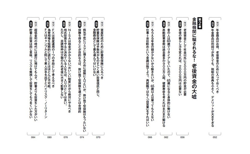 日々メディアからは年金不安、老後資金、日本経済全体への不安など老後を脅かす様々な問題が煽られている。政府や官僚、金融機関、メディアが報じるお金に関する問題に潜む噓やフェイクを元財務官僚である著者があぶり出す。ファクトを知られると困る人々がいまの日本人の不安を増大させ続けているのだ。