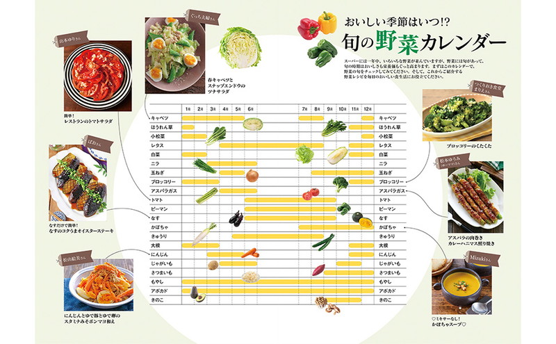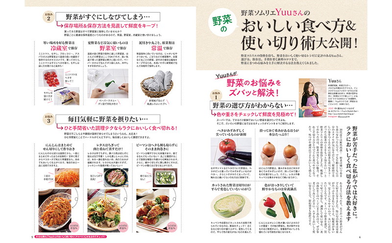 巻頭特集では「野菜ソムリエYuuさんの『野菜のおいしい食べ方&使いきり術大公開!』」や「旬の野菜カレンダー」を掲載。