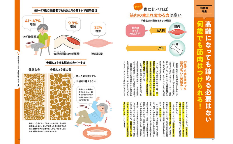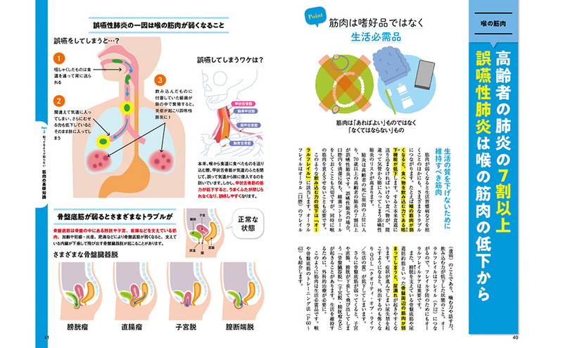 知っているようで知らない筋肉について、図解で徹底解説します。筋トレで筋肉を増やしたり、維持することは高齢者にとってもメリットがたくさん。高齢者のサルコペニアやフレイル対策としても注目されています。いつまでも動ける体を実現するために、筋肉を減らさない知識や実践法を教えます。