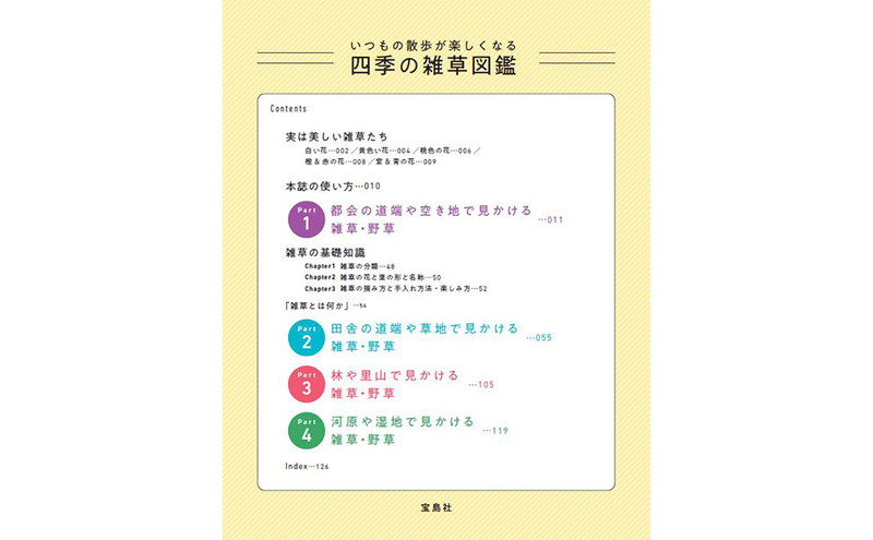 本誌は生息地や開花時期など、詳細なデータと共に、約300種の雑草を写真で紹介。