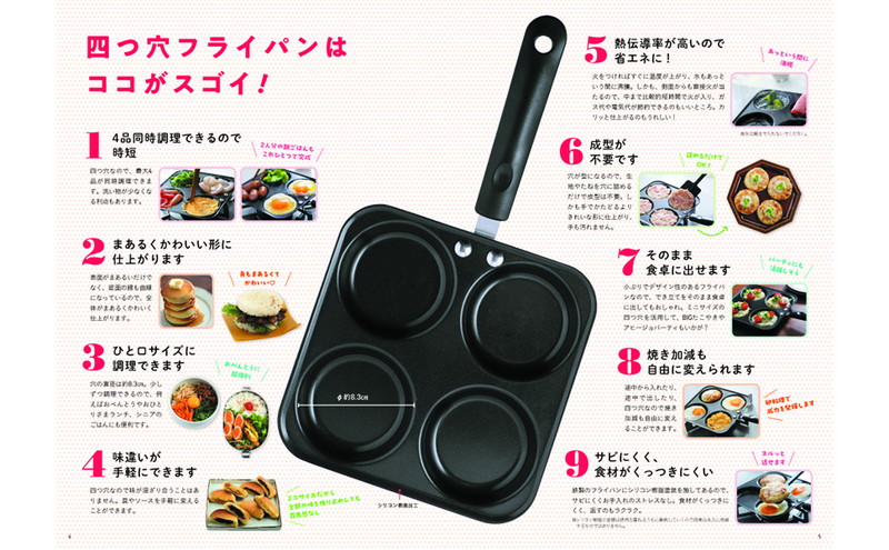 SNSでバズり中の四つ穴フライパン(丸く四つに仕切られたフライパン)が付録のムックです。