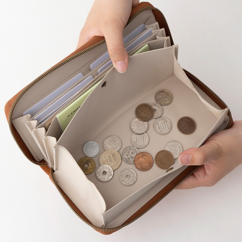 ガバッと大きく開くので、小銭を見つけやすい。出し入れがしやすくレジ前で慌てる心配もありません。