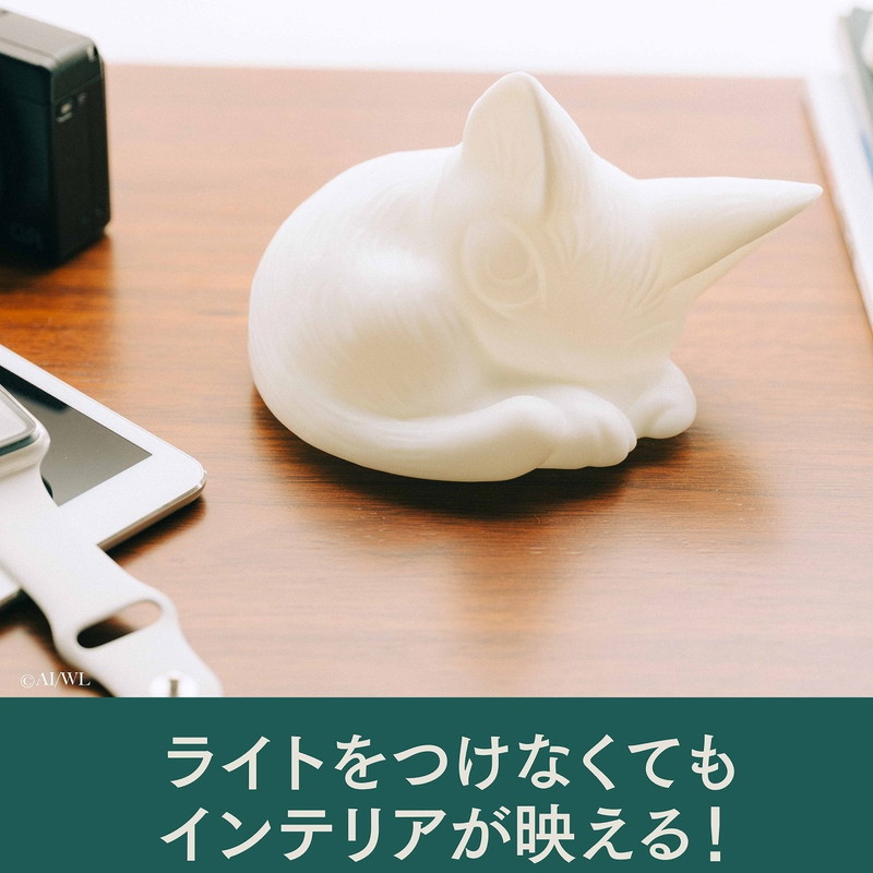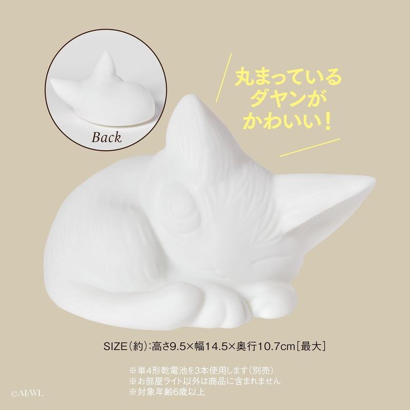 ベッドやテーブルサイドなどで便利に使える手のひらサイズです。夜はあたたかな光で癒やされるライトとして、日中はダヤンの姿がキュートなインテリアオブジェとしても楽しめます。
