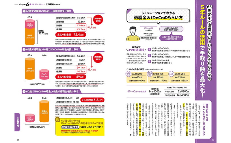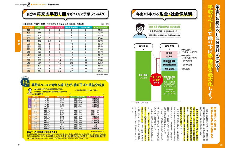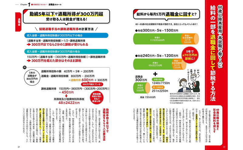 定年前後は、お金に関する間違えると大変なことがたくさんあります。本誌では「iDeCoとNISAを一度に解約しない」「うかつに年金の繰上げ受給をしない」など、退職金・年金の受け取り方から、社会保険・相続をどうするのかまで、手続き・届け出の裏ワザを図版でしっかり解説します。また老後貧乏にならないためには、定年前後の数年間だけでなく、その後も長く続く老後の10~20年が大事! 困らないためのルールを教えます。