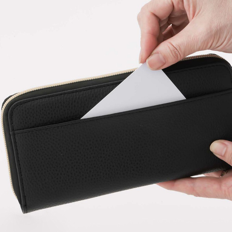 財布の背面ポケットにはよく取り出すカードなどが入ります。使いやすいデザインと、おしゃれなブランドロゴで満足度の高いアイテムに仕上がりました。