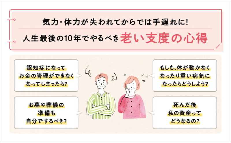 人生、「最期の10年」の過ごし方が晩節を汚すかどうかの分かれ道。今はまだ考えたくない、と後回しにしても、必ずやってくる認知症や体の衰えが進んでからでは、最期の日を見据えた整理も一苦労です。なぜあの時やっておかなかったのか、と後悔する前に、財産整理のこと、お墓のこと、人間関係、モノの片づけのことなど、できるうちから始めましょう。本誌では、人生をまとめるための備えと手続きを、最新の制度に合わせてもれなく具体的にお教えします。