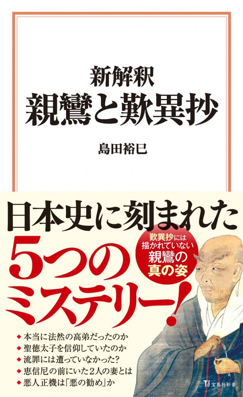 仏教界で確たる人気を誇る親鸞は、5月に誕生850年を迎えます。浄土真宗の宗祖といわれていますが、本当に実在したのかどうかも含め、いまだ謎の多い人物です。また、親鸞の弟子が記した鎌倉時代の仏教書『歎異抄』についても、近年、偽書ではないかという指摘も出てきています。そのほか、「なぜ『教行信証』の執筆に打ち込んだのか」「なぜ聖徳太子を深く崇敬したのか」などを含め、本書では親鸞や『歎異抄』にまつわる謎と新解釈を綴ります。