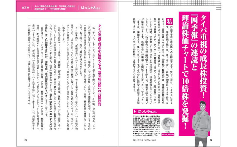 ITエンジニア兼業投資家として割安成長株に長期投資するスタイルで1億円を達成。現在は独立・起業して「初心者にも持続可能な株式市場の実現」という理念のもと、専門的な金融知識なしで利用できる株式入門サイト「株Biz」を監修・開発。理論株価や決算通信簿、月次情報など独自の投資コンテンツを配信する。投資家VTuberとしてマネー誌、投資メディア、SNSでも活動し、ビジネス著書累計10万部、Twitterフォロワー数7万人、YouTubeチャンネル登録数1.7万人。