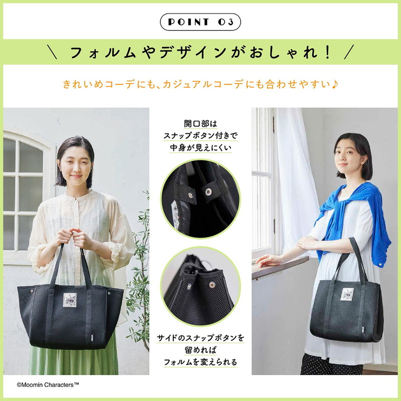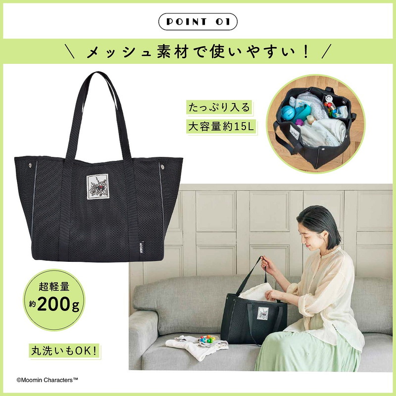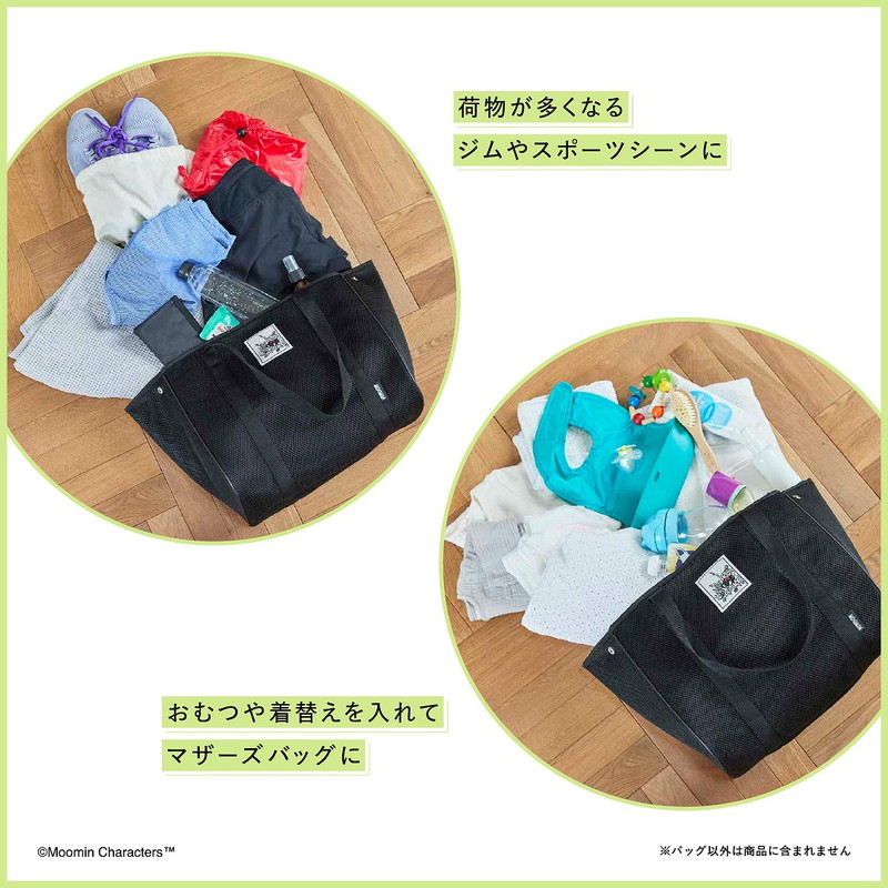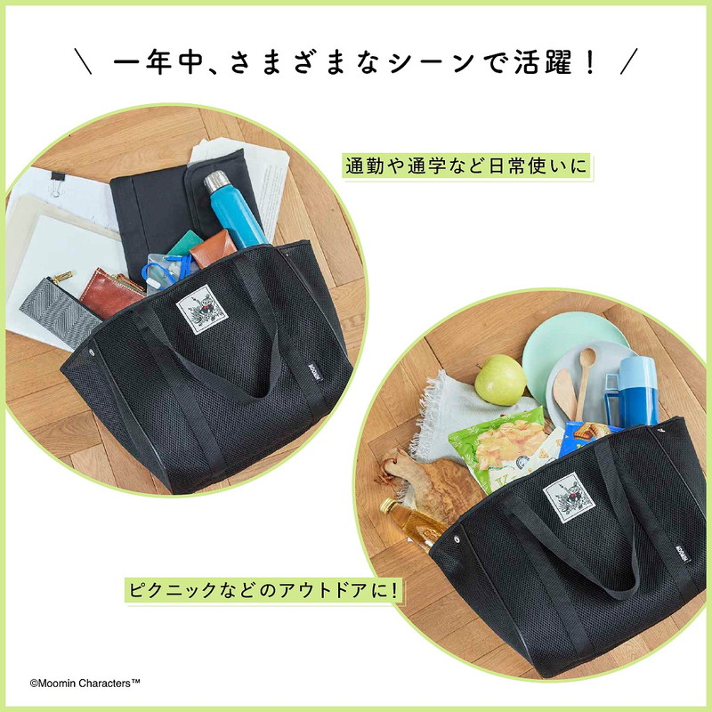 ムーミンから、メッシュ素材で超軽量の洗えるトートバッグが登場しました。