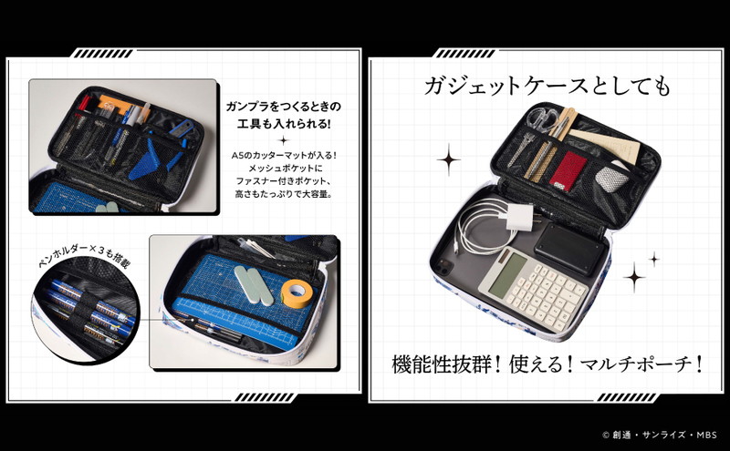 ガンプラを作るときの工具を入れたり、ガジェットケース、メイクポーチなどマルチに使えるポーチです。