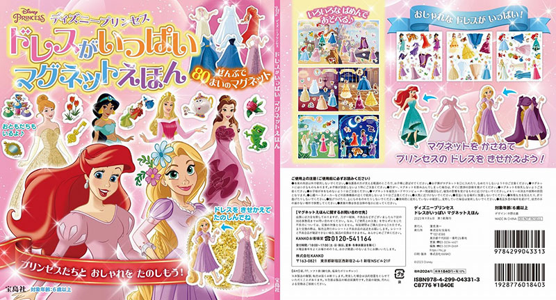 ディズニープリンセスたちのきせかえあそびができるマグネットえほんが、コンパクトなサイズで登場。