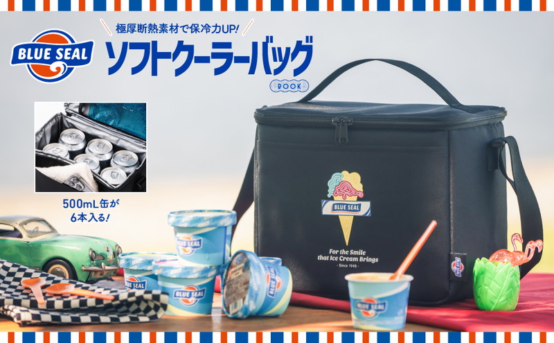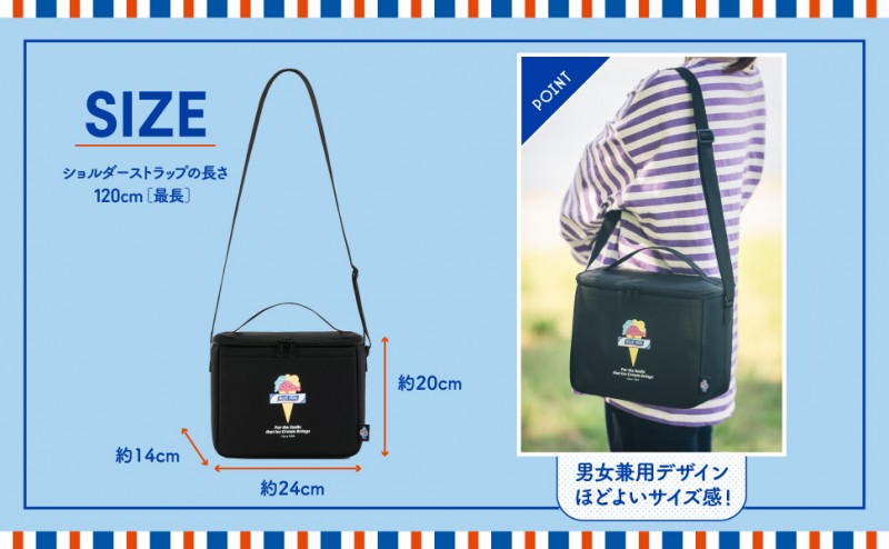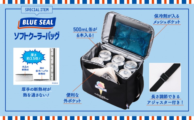 スペシャルアイテムは、ブルーシールのアイスロゴをプリントしたソフトクーラーバッグ。夏らしくさわやかなデザインが魅力です。