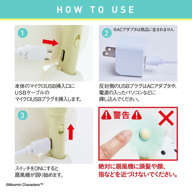 心地よい風に癒やされて、元気をもらえるミニ扇風機。この夏はムーミンといっしょにホッとひと休みしてください♪