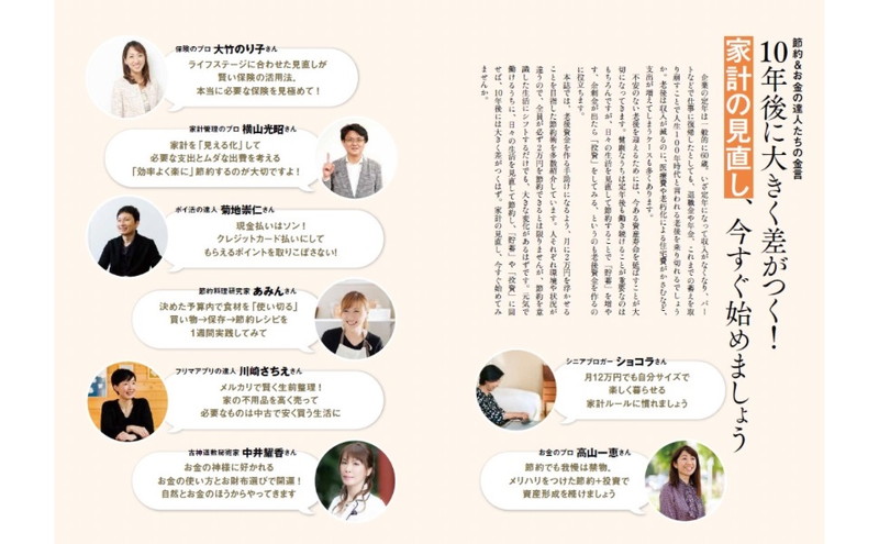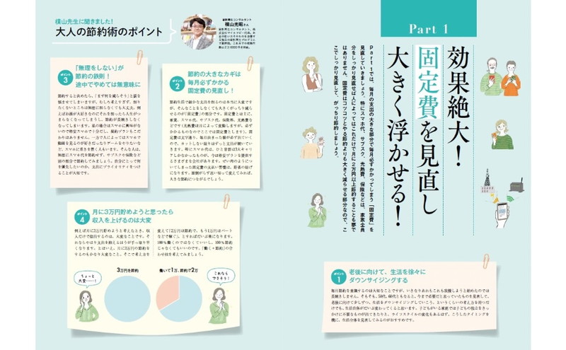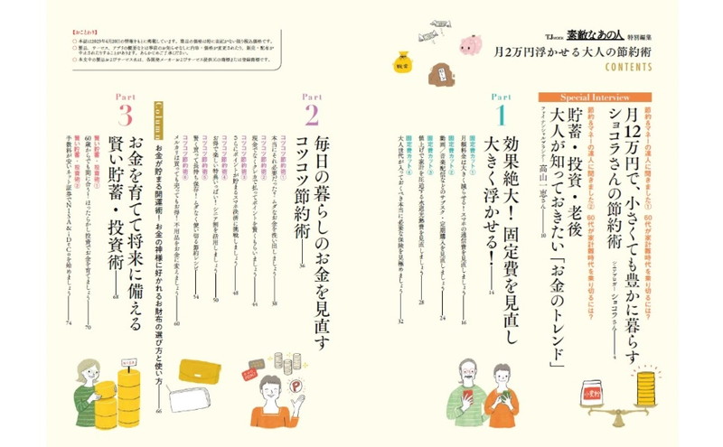食品、日用品から光熱費まで、あらゆるものが値上がりし、家計は厳しくなるばかり。毎日の暮らしのお金、将来必要なお金を考えて、不安で頭を抱えている人も多いことと思います。本誌では、ムリなくコツコツ続けられる節約術をたっぷり紹介! 節約の達人&マネーの先生の実例やアドバイスから家計を見直して、効果の高いものからムダをカット、ポイントや受け取れるお金は確実に手に入れて、月2万円を浮かせていきましょう。