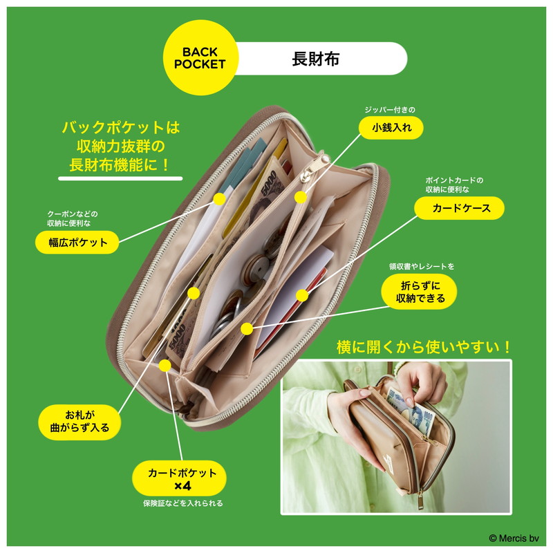 ジッパー付き小銭入れ・カードケース・カードポケットなどの機能はもちろん、