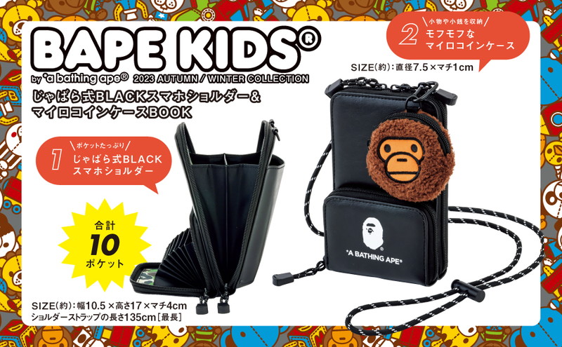 BAPE KIDS(R) by *a bathing ape(R) 2023 AUTUMN/WINTER COLLECTION じゃばら式BLACKスマホショルダー&マイロコインケースBOOK