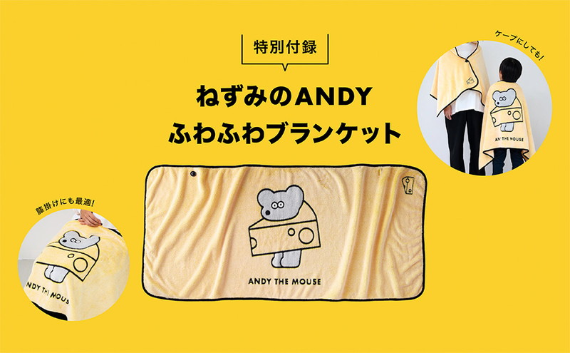 付録は、アート作品のひとつ「ねずみのANDY」が描かれた、ふわふわのブランケット。