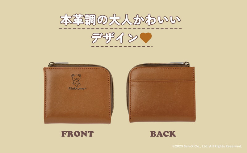 フロント部分にはお座りポーズのリラックマの型押しが。ワンポイントがさりげなくて、大人が使いやすいデザインです。