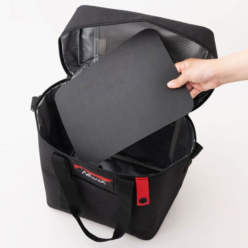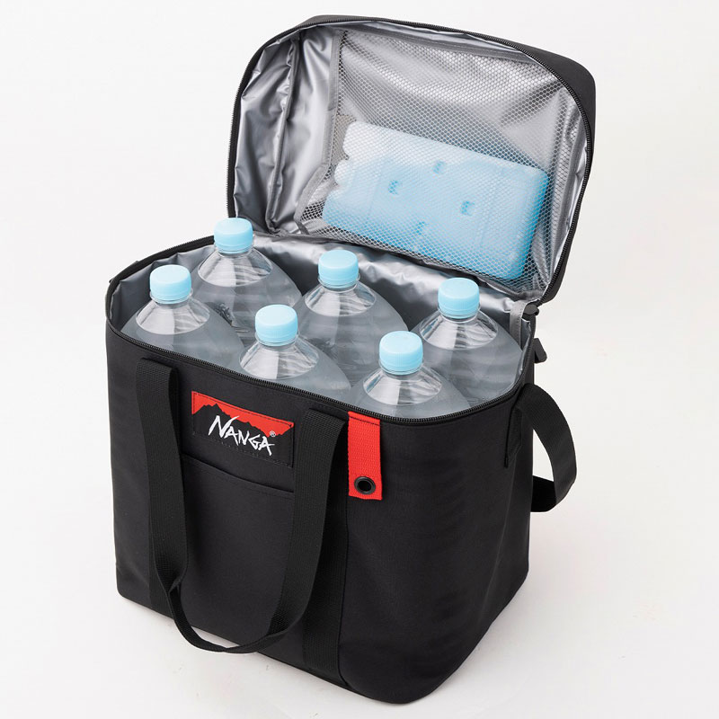 体験型ショップの見どころや、テントの試し張りサービスをご紹介。特別アイテムは、「NANGA(ナンガ)」の特大保冷バッグ。2リットルのペットボトルが6本入る大容量! ゴム付きで小さくたためるので、持ち運びも便利。シーズン問わず活躍すること間違いなしです。