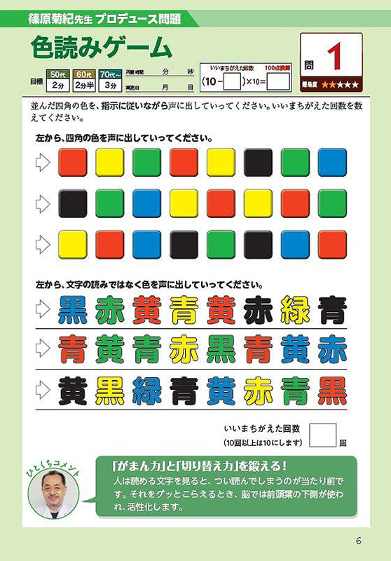 篠原菊紀先生監修による、もの忘れ・認知症を防ぐ脳トレ問題を670問掲載。