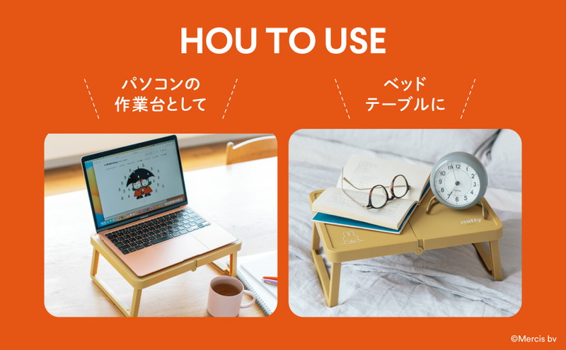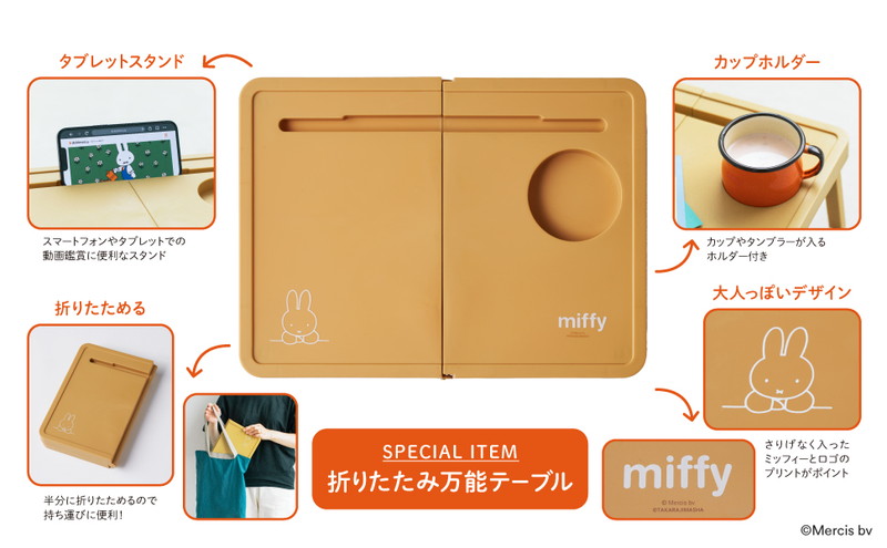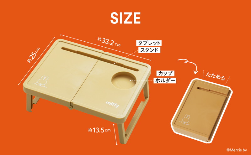 シンプルでインテリアにも馴染む、おしゃれな折りたたみミニテーブルができました。ミッフィーとロゴのプリントがポイントになった大人かわいいデザインです。
