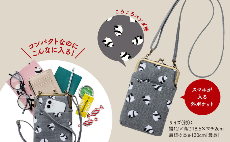 人気の「ころころパンダ」柄がかわいい! スマホがすっぽり!