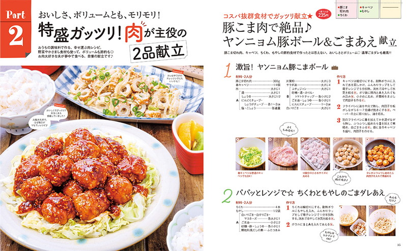 作る料理は2品のみ。ボリューム感たっぷりでみんなが大満足の献立が70日間分! 節約と時短、満足が同時にかなう感動献立、それが「りなてぃ流2品献立」です。主菜+副菜だけなので、すぐにできて満足度も高い! 毎日の家事と仕事に追われている人でも手際よく作れて、心にも余裕が生まれます。