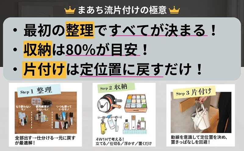 大半の人が陥りがちな、間違った片付け法を思考から正すことで、「時間」「お金」「精神的余裕」が生まれて人生もみるみる楽しくなる! 「片付けられない人」は卒業して、すっきりと整頓された部屋で暮らしてみませんか?