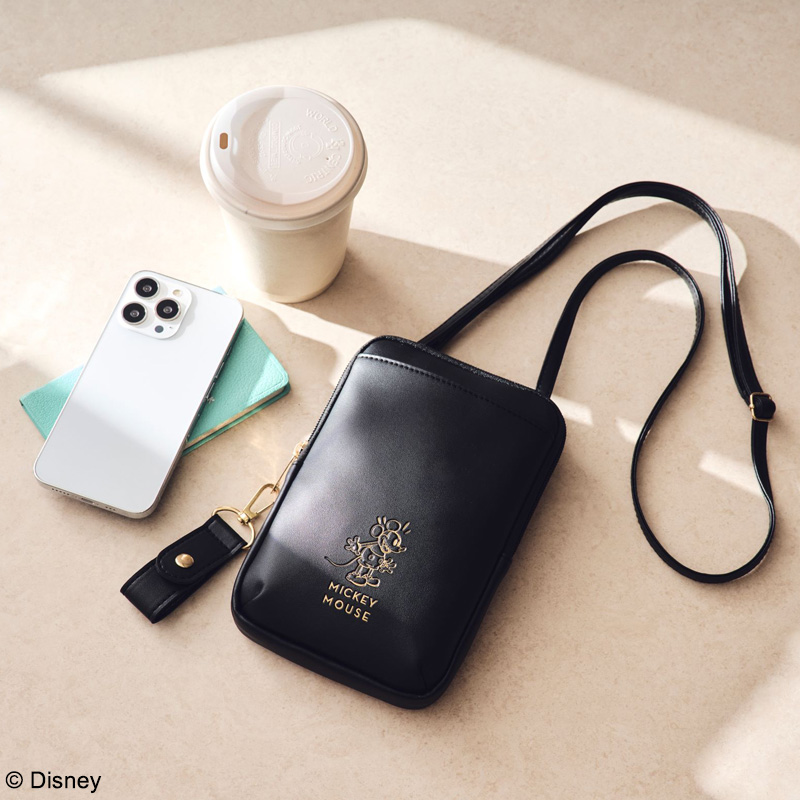 スマホがすっぽり入り、両手があくからお出かけがラクチン!と大流行中のスマホショルダーのミッキーマウスデザインが登場。