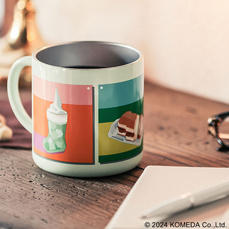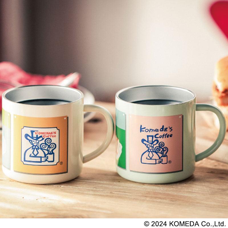 コメダおじさんのロゴとコメダ珈琲店の定番メニューのイラスト入り真空断熱マグタンブラーが登場。