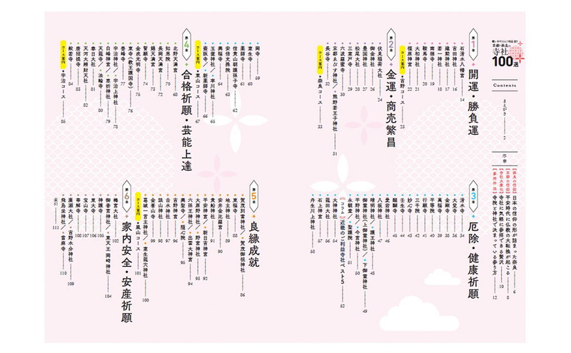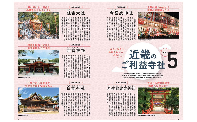 京都と奈良の約7000社ある寺社の中から、開運、金運、商売繁昌、厄除け、健康祈願、良縁など、ご利益毎に100社厳選し紹介!