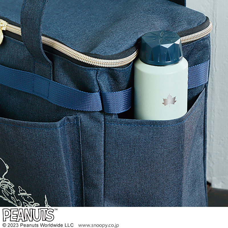 アニバーサリーデザインのファスナートップや、自然をフィールドに冒険するスヌーピーとウッドストックのデザインで、お部屋の収納バッグとしてもインテリアに馴染むかわいい佇まいです。