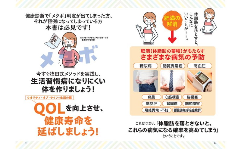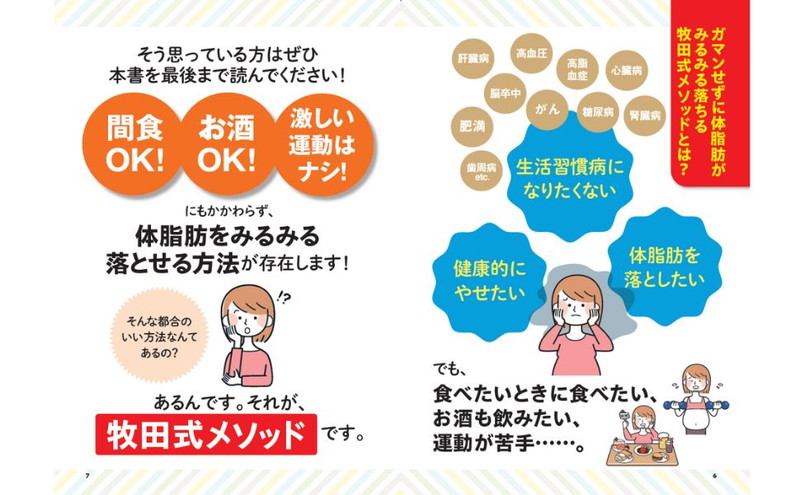 40代を過ぎて痩せにくくなった大人のための体脂肪の落とし方ムックです。「お酒はつまみに気をつければ何を飲んでもOK」「食べる順番を変えるだけ」「豆をはじめに食べる」など、現状の生活習慣を大きく変えないまま、極力ガマンせずに痩せるための食べ方や、「ながら」「ついで」でできる効果的なエクササイズなどを紹介します。