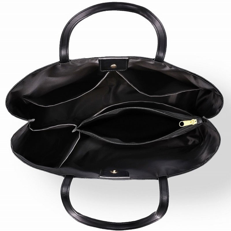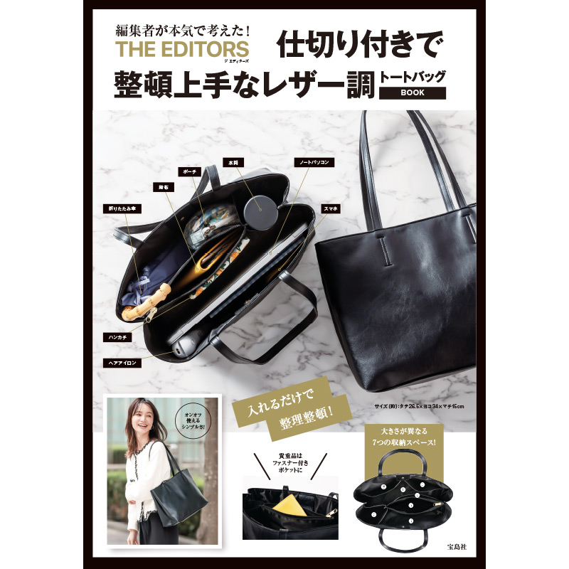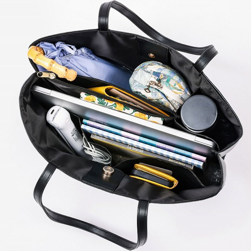 仕切りとポケットで7つの収納スペースがあるトートバッグ。