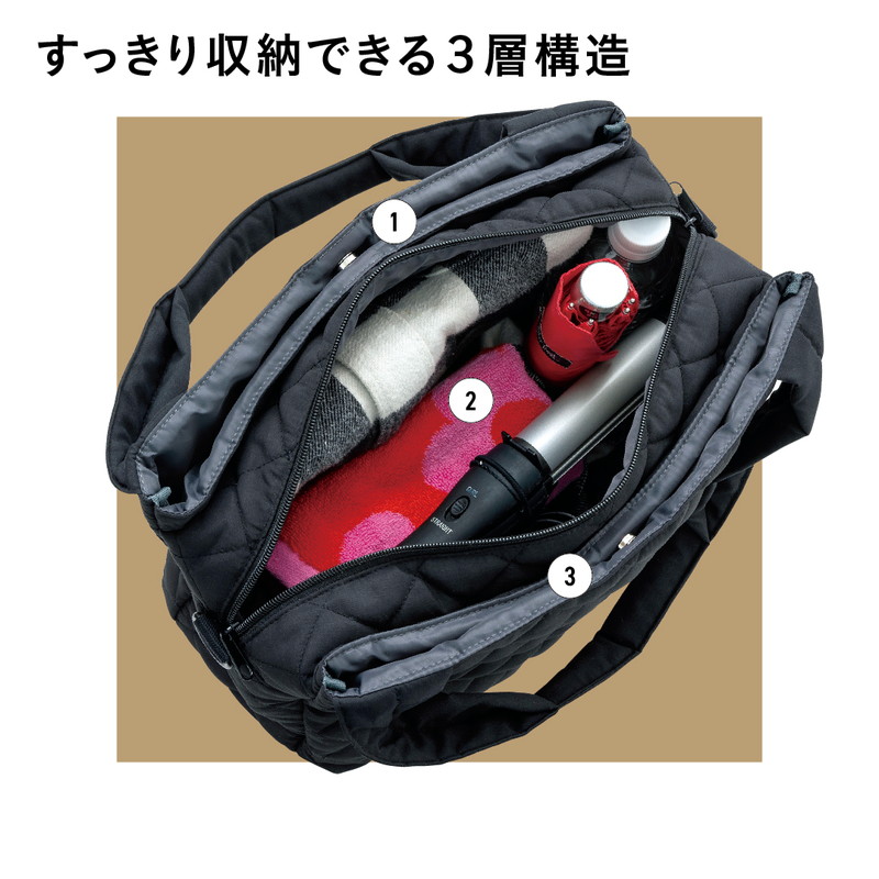 仕分けがしやすい3層構造。整理整頓に便利な内ポケット付き