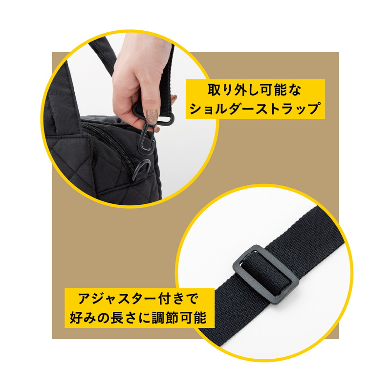 着脱&長さ調節が可能なショルダーストラップ付きで