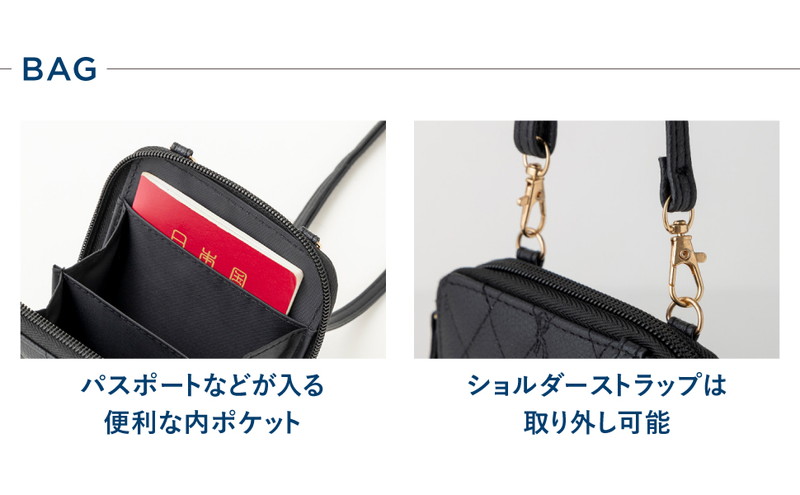 ショルダーストラップは取り外し可能。バッグとしてはもちろん、ポーチとしても使うことができます。シーンに合わせて使い分けて。