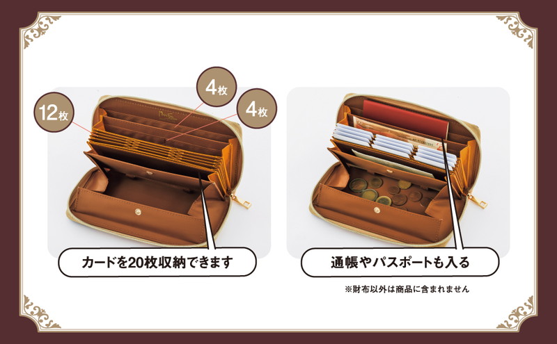 レシートと小銭が自動で分かれる機能付き。じゃばら式カードポケット&通常のカードポケットがあり、合計20枚のカードが収納できるとても実用的な作りです。