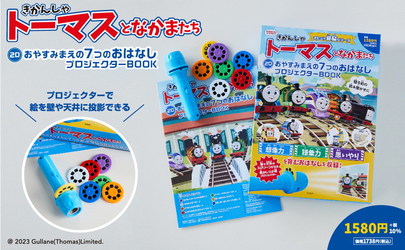 おうちの壁や天井がかんたんにスクリーンになる『きかんしゃトーマス』の寝かしつけ用プロジェクターBOOK、待望の第3弾が完成!