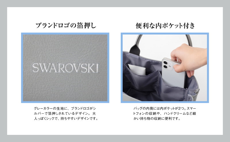 Swarovskiのアイコンである「スワン」が刻印されたタグは取り外しもOK。