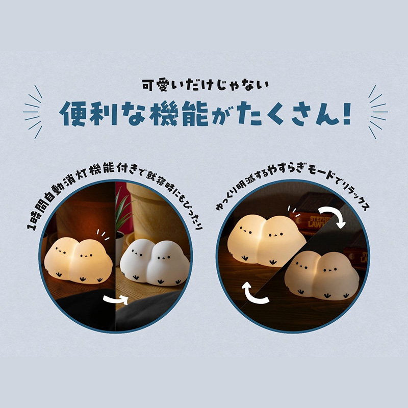 やすらぎモードや自動OFFタイマー付きで機能面も便利。癒やしのシマエナガお部屋ライトをぜひご自宅に迎えてください!
