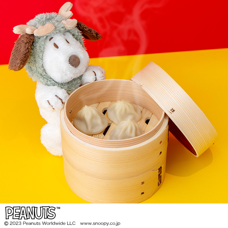 2024 年の干支は辰! スヌーピーのぬいぐるみが角の生えたフードをかぶってかわいいドラゴンになっちゃった!
