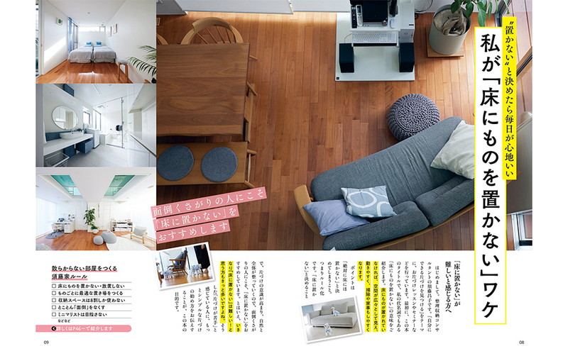 大人気「床にものを置かない」シリーズ最新刊は、大人世代に向けた一冊です。体力がなくなってきた世代でもできる、体に負担をかけない片づけ術を紹介。片づけに苦手意識を持っている人でも、ちょっと意識を変えるだけで、楽ちんで快適な暮らしは実現できます。今度こそ最後の片づけにしたい! これからのために身の回りを整理したい! というすべての人に役立つ一冊です。