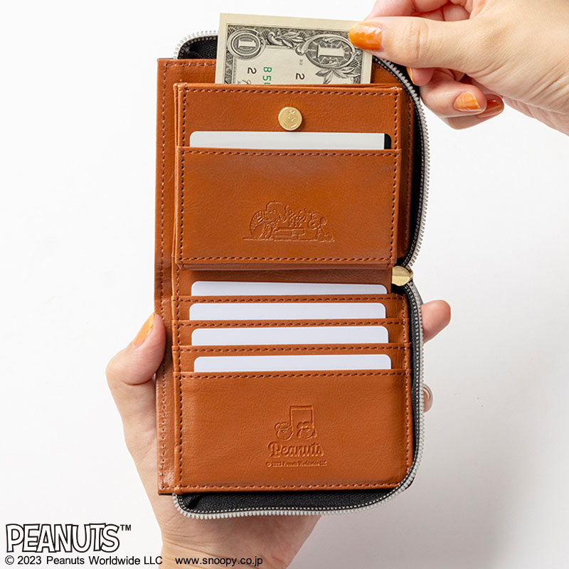 スヌーピーが箔押しされた控えめなワンポイントデザインで、コンパクトで軽いのに、上品な佇まい。持っているだけで装いがワンランク上がりそうな見た目だけでなく、使い勝手の心地よさも兼ね備えた財布ができました。