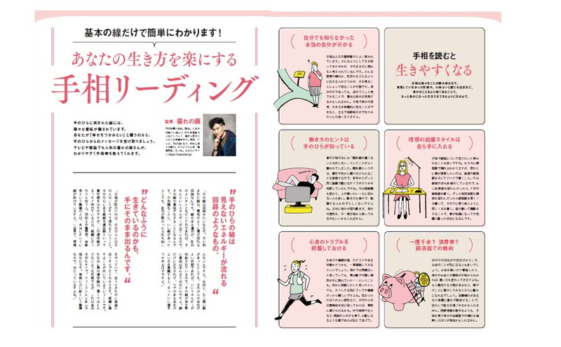 人付き合いや仕事のこと、お金のこと、日々の迷いや悩み、さまざまな選択を迫られたとき、手の平を見ることで、自分らしい決断のヒントを得られる「手相」の本です。